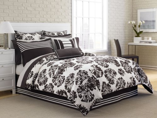 Looking at the photos, I thought the dark brown print on a white background was interesting. I ordered the comforter, and when it arrived, I found it so striking I ordered all the rest: sheets, bedskirt, both sizes of shams. It is amazingly beautiful and bold. My room never looked so good!