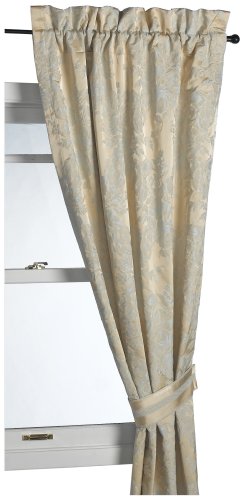 - Window drapery set including 2 lined panels and 2 tiebacks- Rayon-and-polyester-blend face; dry clean only