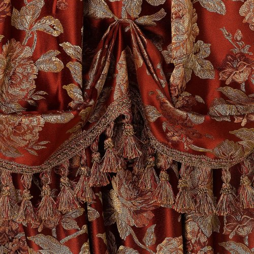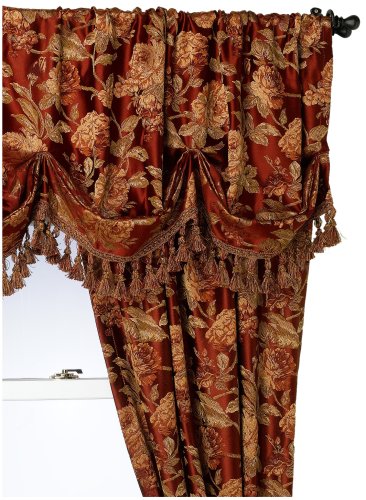 Croscill's "Harvest Manor" Lexington valance is sure to add elegance to your room and window. The pattern is a beautiful large scale, all over floral motif in a rich red ground. A gorgeous multi color tassel fringe graces the bottom of the valance. The valance has a total length of 32 inches including the 3 inch rod pocket but excluding the trim. An additonal 3 inch header is above the rod pocket for a custom look. The total width of the valance is 84 inches. It is recommended that 1 Lexington valance be purchased for every 36-48 inch window for custom fullness.