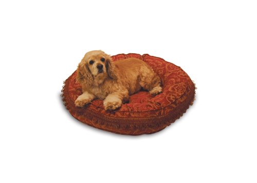Treat your pet to the luxury of a Croscill donut shaped pet bed. A handsome scroll design is woven into a polyester jacquard and accented with a coordinated braided trim. Medium bed is a 28 inch diameter suggested for pets up to 40 pounds.