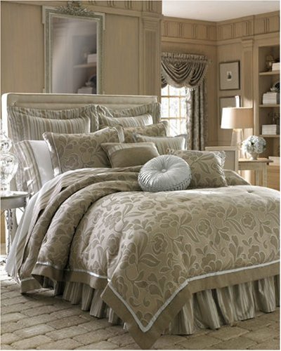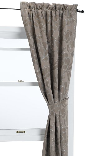 Croscill's Europa bedding ensemble is a contemporary take on traditional patterns and designs. In shades of taupe, the oversized floral design on the body of the drapes is outlined in a chic robin's egg blue. The Europa pole top drapery panels measure 41-inch wide by 84-inch tall, are fully lined, and have encased sewn in weights in each bottom corner for better draping. The 3-1/2-inch rod pocket, which is not included in the finished length of 84-inch, will accommodate both continental and decorative rods. The 3-inch header along the top of each panel gives these drapes a truly custom feel. Enjoy your view by using the coordinating tiebacks to hold the panels into place. Each pole top drape includes 2 panels and 2 tiebacks. Add the coordinating Europa swag valance to complete the look.
