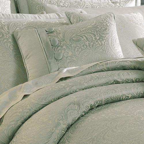 Croscill Rigaletto Decorator Boudoir Pillow brings style to your bedroom décor. A beautiful traditional bedding ensemble. The Rigaletto bedding collection by Croscill Bedding is a perfect centerpiece for your bedroom décor. The Croscill Rigaletto bedding collection features a subtle Jacobean-inspired paisley motif in lush sea green. Boudoir Pillow 22" x 14".