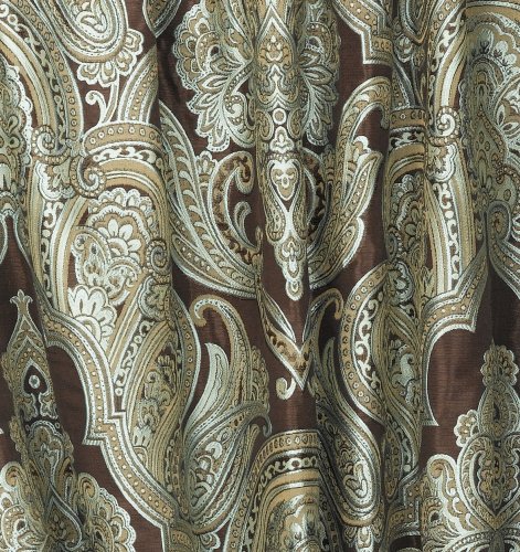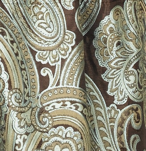 - Sophisticated pole-top drapery with two panels, each measuring 41 by 84 inches- Intricate medallion patterning in aqua woven across a striated chocolate ground