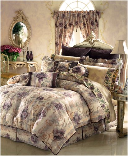 Buy Low Price From Here Now With subtle coloring and a painterly floral design, the Croscill Chambord bedding collection will add a distinctively elegant flavor to your bedroom decor. The polyester-fill comforter features a tossed flower design interspersed with a stylized vine in rich hues of amethyst accented with soft sage and oyster. The sheet set features a tonal print, bordered by a small floral vine, and is made from 220-thread-count, 100 percent cotton percale. The dust ruffle, shams, and full complement of accent pillows also continue the floral patterning and add dark texture and silvery tassel accents. Comforter sets include a comforter, dust ruffle and two pillow shams (one for Twin), and sheet sets include a fitted sheet (with deep pockets), flat sheet, and two pillowcases (one for Twin). Sheets and pillowcases are machine washable and dryable, but dry cleaning is required for the comforter, pillow shams, and bedskirt.