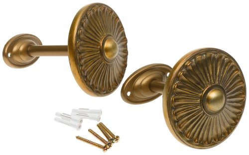 Croscill's decorative window hardware is the perfect finishing touch to set off a window treatment. Using the right window hardware is what makes pretty into gorgeous. These simple, yet elegant collections feature several varieties of hand-painted finishes, uniquely designed finials, and exclusive motifs. The Hawkins decorative tiebacks, in a rich gold, are a natural addition when paired with the coordinating Hawkins decorative pole. The metal post that mounts the tieback measures 3-3/4 inches out from the wall, while the face of the tieback measures 4 inches in diameter. Not only are these a beautiful way to hold back your drapes, but they make beautiful scarf holders as well.
