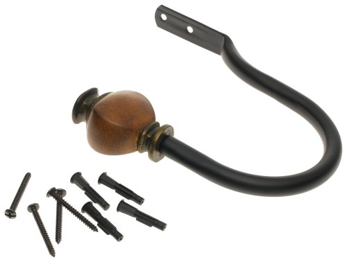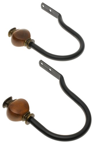 - Tiebacks are a u-arm design- The wood finials are in a warm mahogany shade
